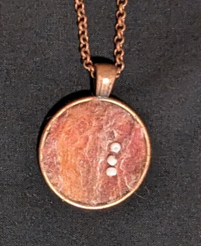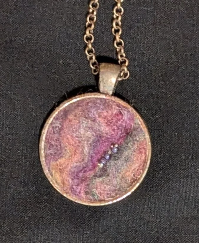 Each piece features handmade wool felt, beads, and includes a chain.